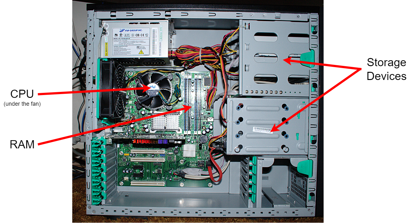 It will be important for you to become familiar with and be able to identify elements of, the foundational concepts of computing: input ⇨ processing ⇨ output. You will notice that the structure of this book is based on this concept. input ⇨ processing ⇨ output is also a general concept, meaning it is not a just Python concept, or even just a programming concept, but a concept that underlies all of computing. For example, computer hardware is designed around this concept. We have keyboards specifically to input data. We have computer Central Processing Units (see CPU later on this page) to process the data we input. And we have computer monitors (screens) to see the output produced by the processing of data that we input. input ⇨ processing ⇨ output is involved in nearly everything you do with computing devices and services (desktop computers, laptops, tablets, phones, smart devices, modern vehicles, kiosks, the Internet, bank ATMs, etc.).