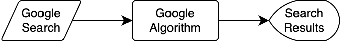 Figure 2 is a high-level Input ⇨ Processing ⇨ Output flowchart of a Google search. We call this high-level because there is no real detail about any of the three parts work, but it demonstrates the concept of Input ⇨ Processing ⇨ Output with an example of an everyday activity you are likely familiar with. We could speak about the diagram in Figure 2 with a bit more description like this: